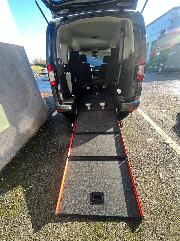 Ford Grand Freedom – The Grand Freedom™ option offers increased space in the rear of the vehicle while accommodating a driver, wheelchair user and up to four additional passengers. The EasyGlide™ can then be folded upwards behind a wheelchair passenger or folded back into the boot floor, whenever your car is not being used with a wheelchair user. Once inside, the wheelchair is secured by high-quality front and rear restraints, while lap and diagonal seat belts ensure optimum security for wheelchair users. Fully compliant with wheelchair accessible vehicle standard.